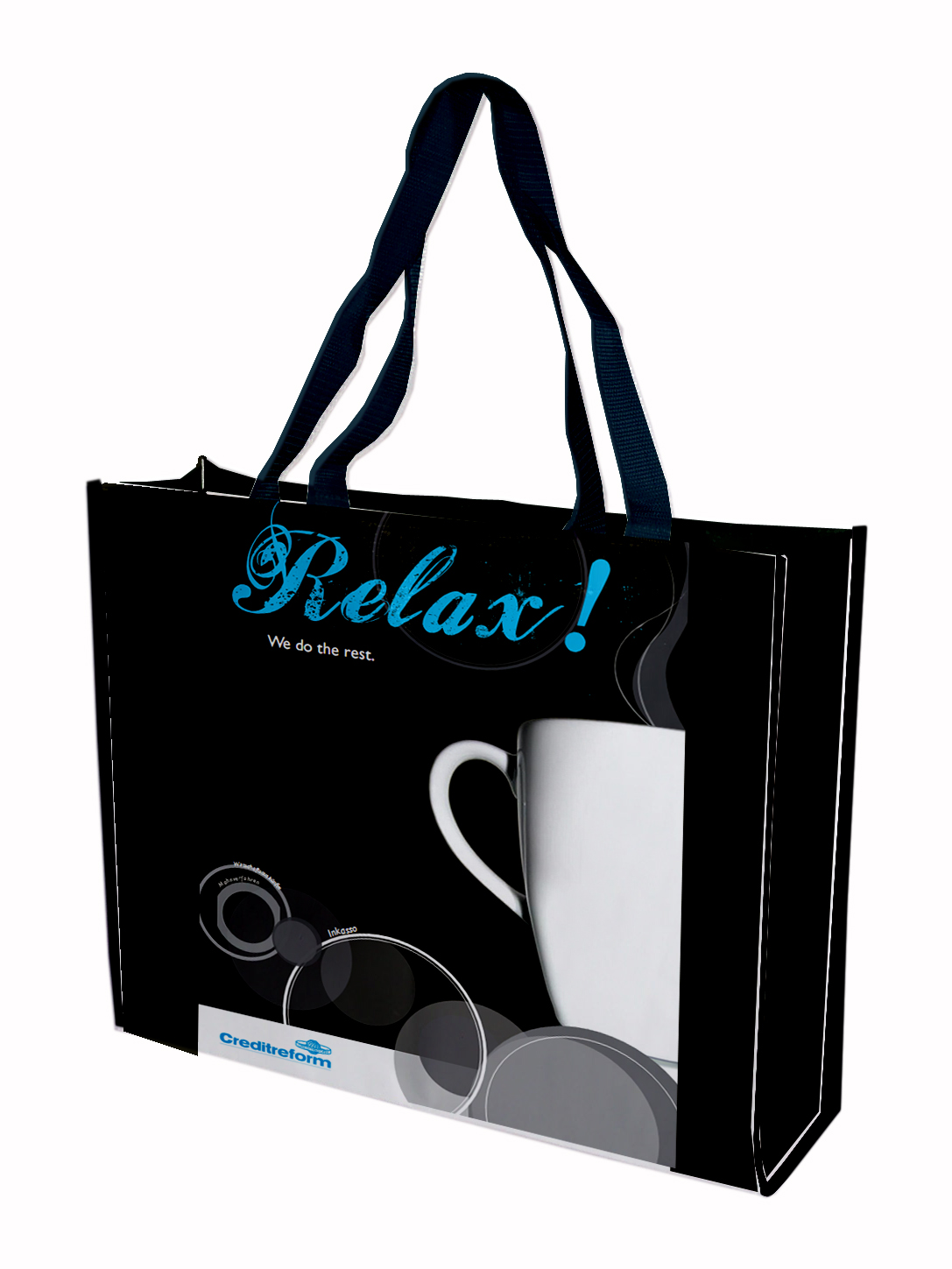 Besondern Eindruck erzielen die Messetaschen aus PP Woven mit individueller Bedruckung. Die Taschen sind sehr tragfähig und reißfest und haben ein Format, dass sich gut für Besucher von Messern bewährt hat. Durch die gewebte Oberfläche haben, die Taschen aus PP WOVEN eine Tragfähigkeit von bis zu 25 kg und eine hohe Langlebigkeit, da der Polypropylen (PP) Kunststoff sehr reißfest ist. Polypropylen besteht zu 20% – 30% aus recycelten PET Flaschen und zu 70% – 80% neue Fasern.